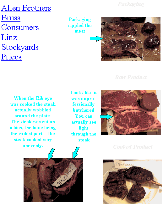 This is our contracted vendor. I was shocked to see the quality of the product stockyards sent us. For one the New York strip steak was so thin you actually could see light though it. The butchering on the rib eye was less than satisfactory as you will see in the documentation below.
